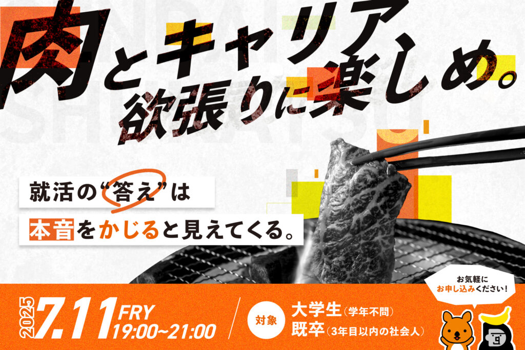株式会社manaby は株式会社デジタルゴリラと共同で、大学生を対象とした就活イベント「肉とキャリア、欲張りに楽しめ。」を開催します。