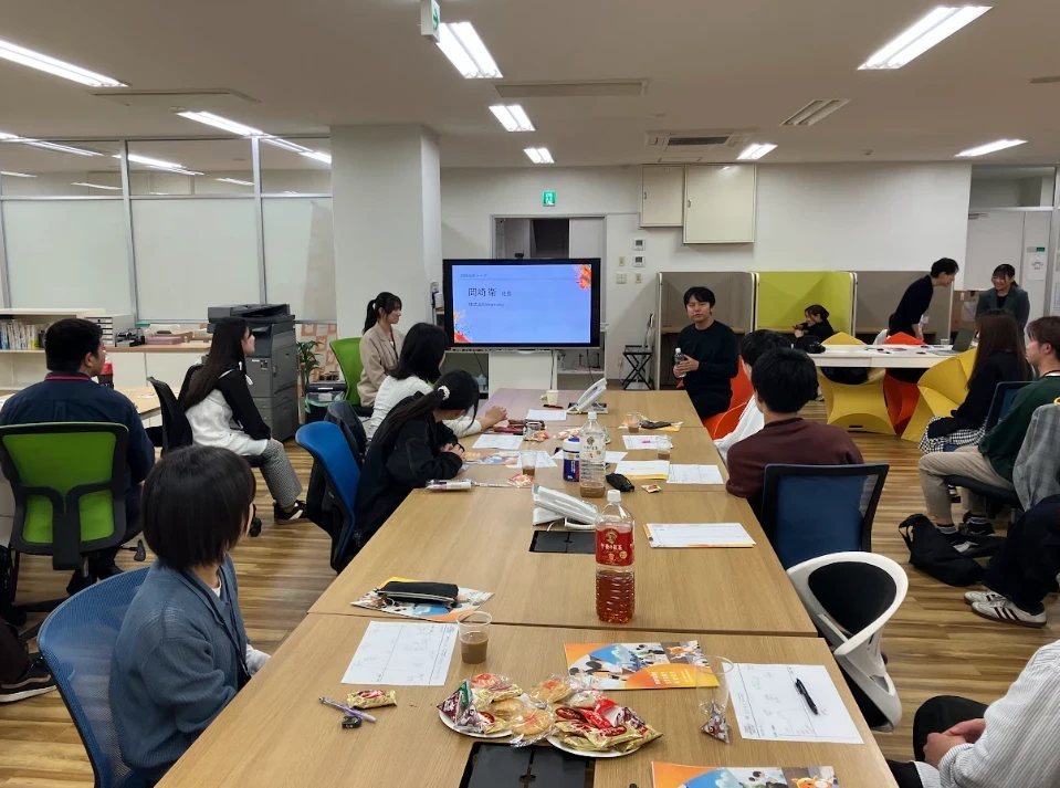 当社代表の岡﨑からも、自身が大学生のころのエピソードなどをお話しし、参加者は興味津々。